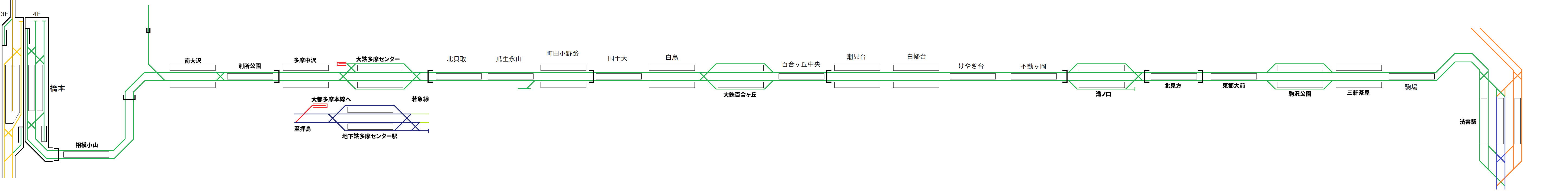 今後1年間、多摩電鉄のロゴ及び、駅内の内装を大都鉄道の設備に改装します。